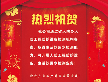 熱烈祝賀 : 我公司取得人防工程防護(hù)設(shè)備、生活飲用水檢測(cè)能力,并于11月17日通過(guò)省人防辦備案!現(xiàn)可承接建設(shè)工程檢測(cè)、消...