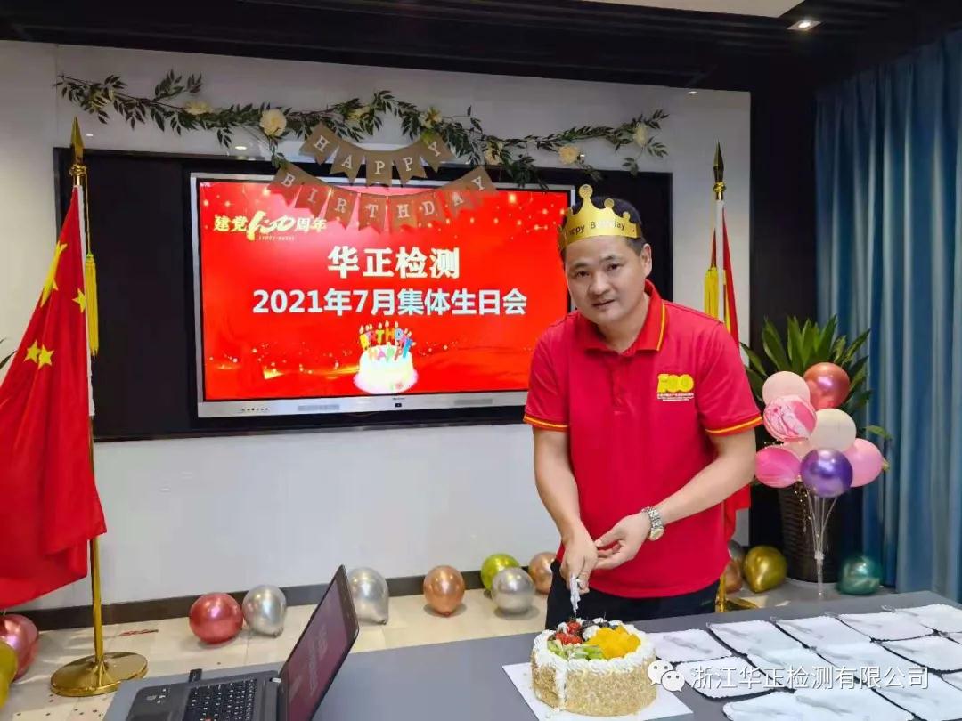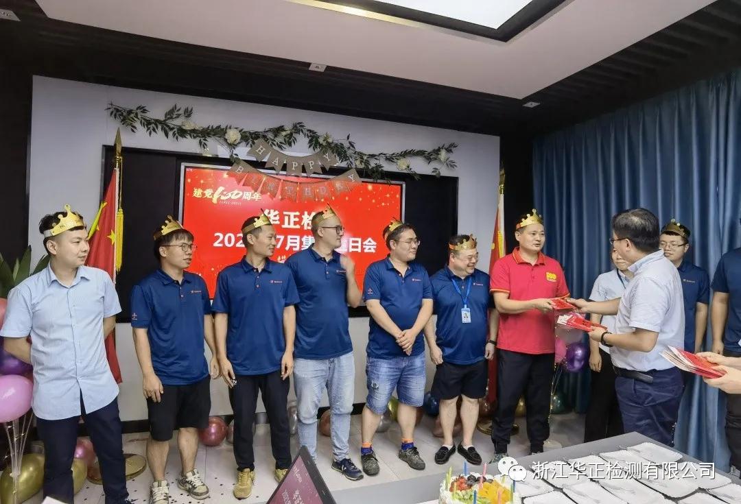 2021年7月1日,正值中國共產(chǎn)黨建黨100周年之際,浙江華正檢測有限公司舉辦7月集體生日會,重溫光輝歷程,共慶百年華誕,向偉大的黨和生日員工獻上最誠摯的生日祝福。董事長張鈺銘、黨支部書記錢小勇與7月生日員工共同參加。