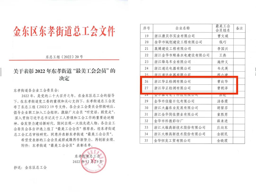? ? ?? 2022年,在上級總工會的工作指導(dǎo)下,在東孝街道總工會的重視和關(guān)心支持下,浙江華正檢測有限公司工會委員會積極響應(yīng),激勵(lì)廣大員工緊跟二十大主題,深入貫徹習(xí)近平總書記關(guān)于工人階級和工會工作的重要論述精神,與公司實(shí)際工作相結(jié)合,大力提升工程檢測技術(shù)技能,為建設(shè)中國特色社會主義新時(shí)代添磚加瓦。期間公司涌現(xiàn)出眾多愛崗敬業(yè)、樂于奉獻(xiàn)、職業(yè)技能和專業(yè)技術(shù)精湛的先進(jìn)個(gè)人。