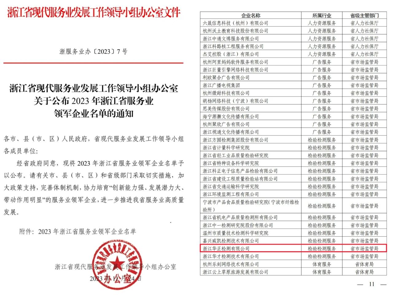 ?近日,浙江首批服務業(yè)領軍企業(yè)名單公布,浙江華正檢測有限公司榜上有名。
