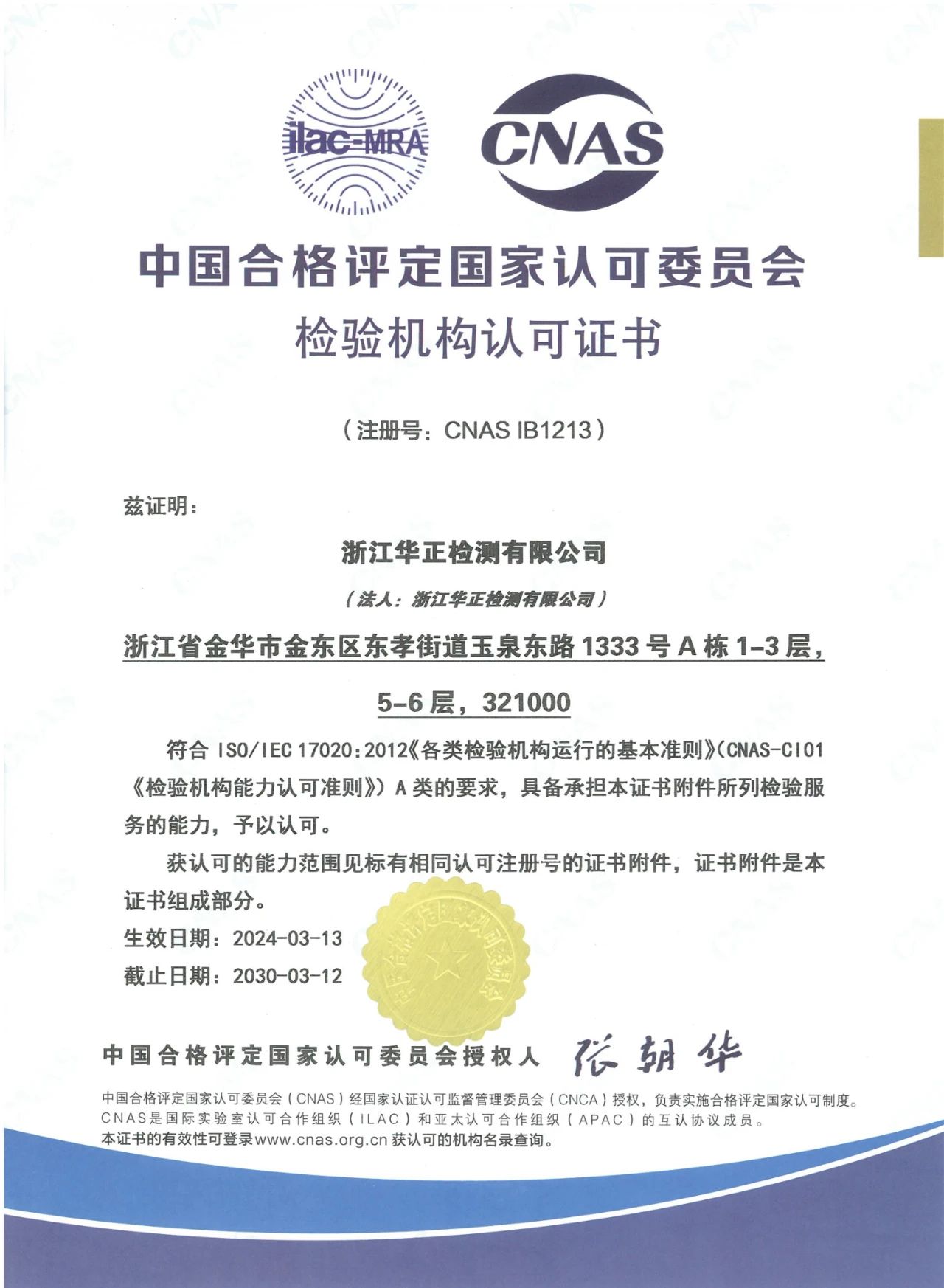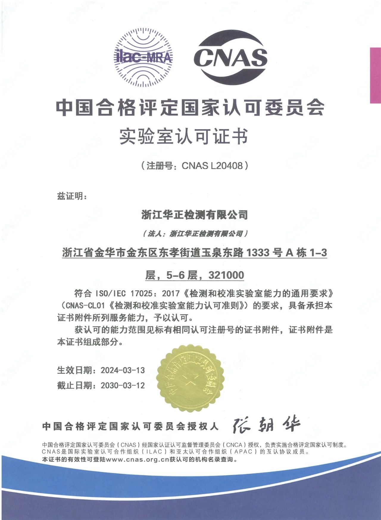 近日,浙江華正檢測(cè)有限公司順利通過(guò)中國(guó)合格評(píng)定國(guó)家認(rèn)可委員會(huì)(CNAS)評(píng)審,成功獲得CNAS實(shí)驗(yàn)室和檢驗(yàn)機(jī)構(gòu)認(rèn)可證書。