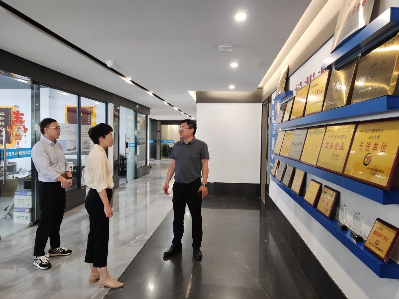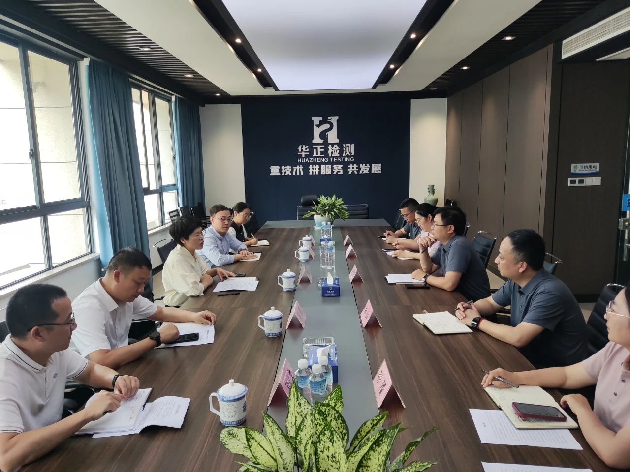 在董事長張鈺銘的陪同下,陳部長一行聽取了華正的發(fā)展歷程、人才隊伍建設(shè)情況以及近年來在檢測領(lǐng)域取得的榮譽成果。截止目前,華正擁有員工300余名,本科及碩士以上學(xué)歷占比超過50%,注冊土木工程師(巖土)、注冊結(jié)構(gòu)工程師、注冊消防工程師、注冊測繪工程師、注冊建造師等具備注冊執(zhí)業(yè)資格人員30余人,中、高級職稱人員 60余人,技術(shù)人員隊伍強大,專業(yè)分布廣泛。